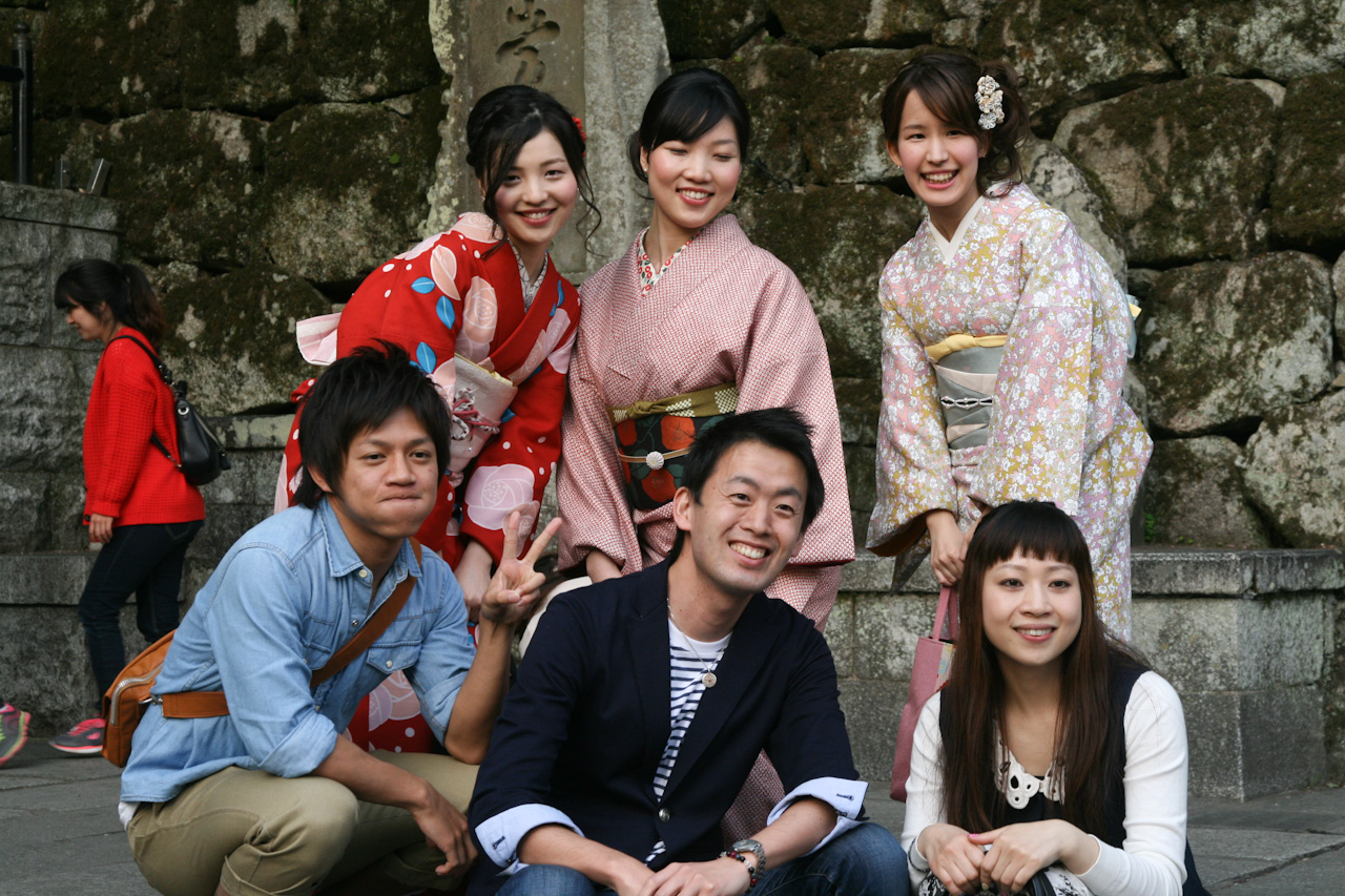 26 avril. Lever du lit encore tôt. Il faut profiter ici, quitte à se lever plus tôt et à faire une sieste une fois que les temples sont fermés (à 17h ou 18h en général). On prend donc un bus pour rejoindre le pavillon d’Argent ou Ginkakuji Temple. Superbe balade dans le parc, très zen, on l’a préféré au pavillon d’Or de la veille. On quitte le temple pour un autre, le Honen-in, situé à l’orée de la forêt. Les rayons du soleil percent à travers les branchages et vont finir leurs courses sur les tombes, c’est magique ! On continue notre route en empruntant le Chemin des Philosophes, chemin bien sympathique au bord d’un canal, qui dessert les principaux temples de cette partie de Kyoto. Le chemin est parsemé de cerisiers mais nous arrivons à peine trop tard : seuls quelques uns sont en fin de floraison. Rapide tour au temple des souris ou Otoyo Shrine qui est en rénovation. On finit la matinée au Nanzen-Ji Temple, immense temple sur plusieurs niveaux avec plusieurs bâtiments.