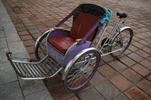 En longeant la citadelle pour trouver un petit restaurant, on se fait accoster par un jeune conducteur de pousse pousse qui essaye de nous vendre son «countryside tour» pour le lendemain. D’abord, on refuse car on voulait louer un scooter comme d’habitude et on a surtout très faim. Il nous dit que ses parents ont un petit boui-boui pas très loin et qu’il nous y emmène gratuitement. On fait donc 5 minutes de pousse pousse-pour arriver dans le petit restau.