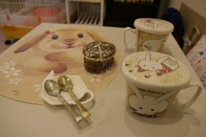 On avait repéré durant notre balade un usagi café mais il était complet et il nous avait dit de repasser plus tard. On s’y arrête donc de nouveau et c’est bon pour cet horaire. Mais kézako un usagi café ? Un bar à lapins évidemment ! Après le bar à chats, comment ne pas craquer devant le bar à lapins où tout est décoré avec des lapins, et où on peut passer un peu de temps avec des lapins dans leurs grandes cages. Très très bon comme expérience, 30 minutes trop cute 🙂 On continue notre petite balade jusqu’au soir où on finit dans un restaurant spécialisé dans les currys.
